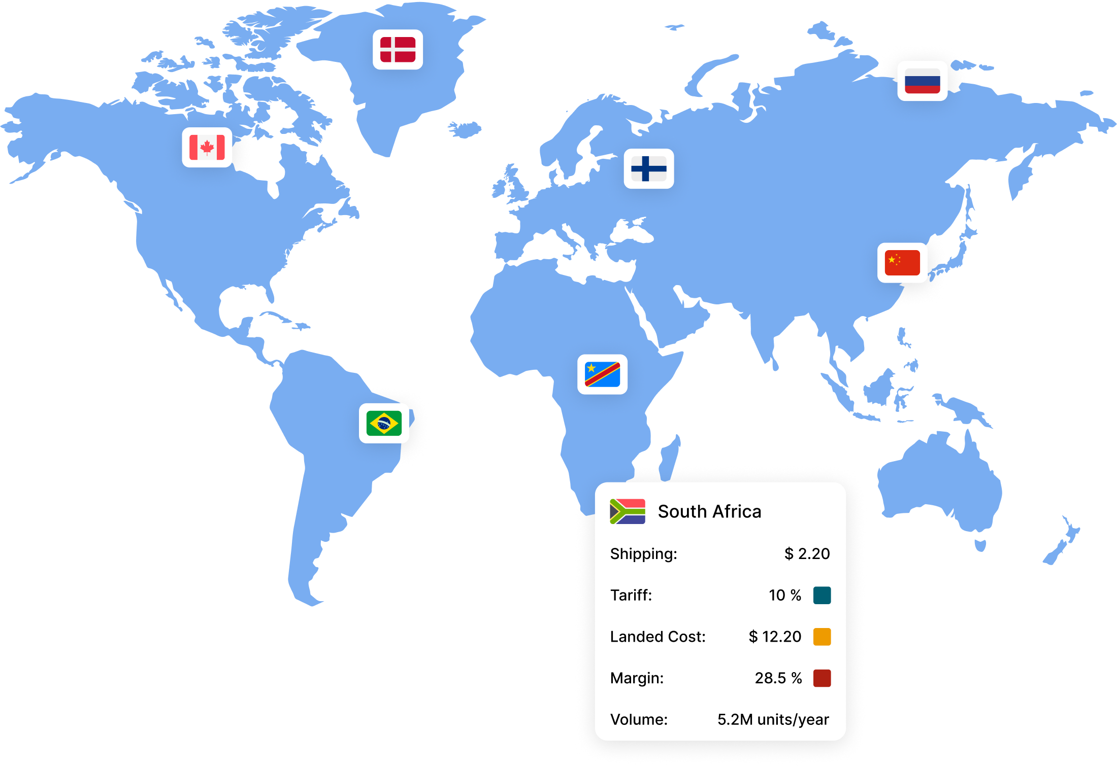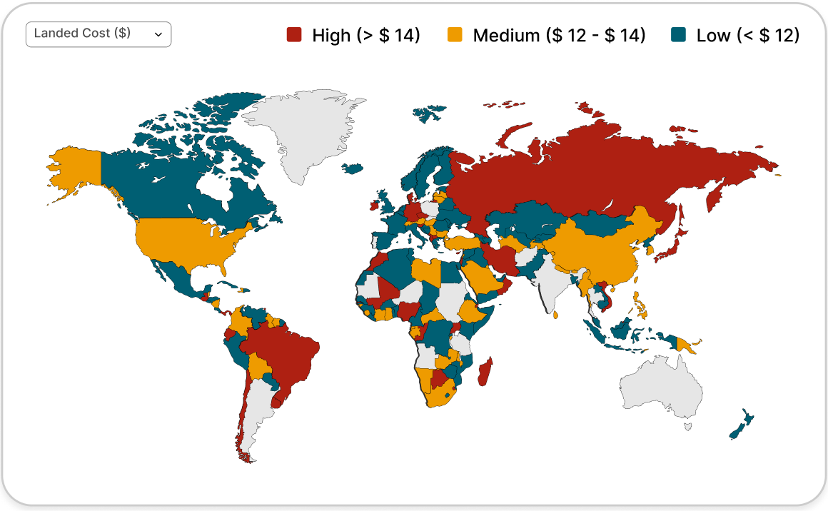 Compare true landed costs by country and product